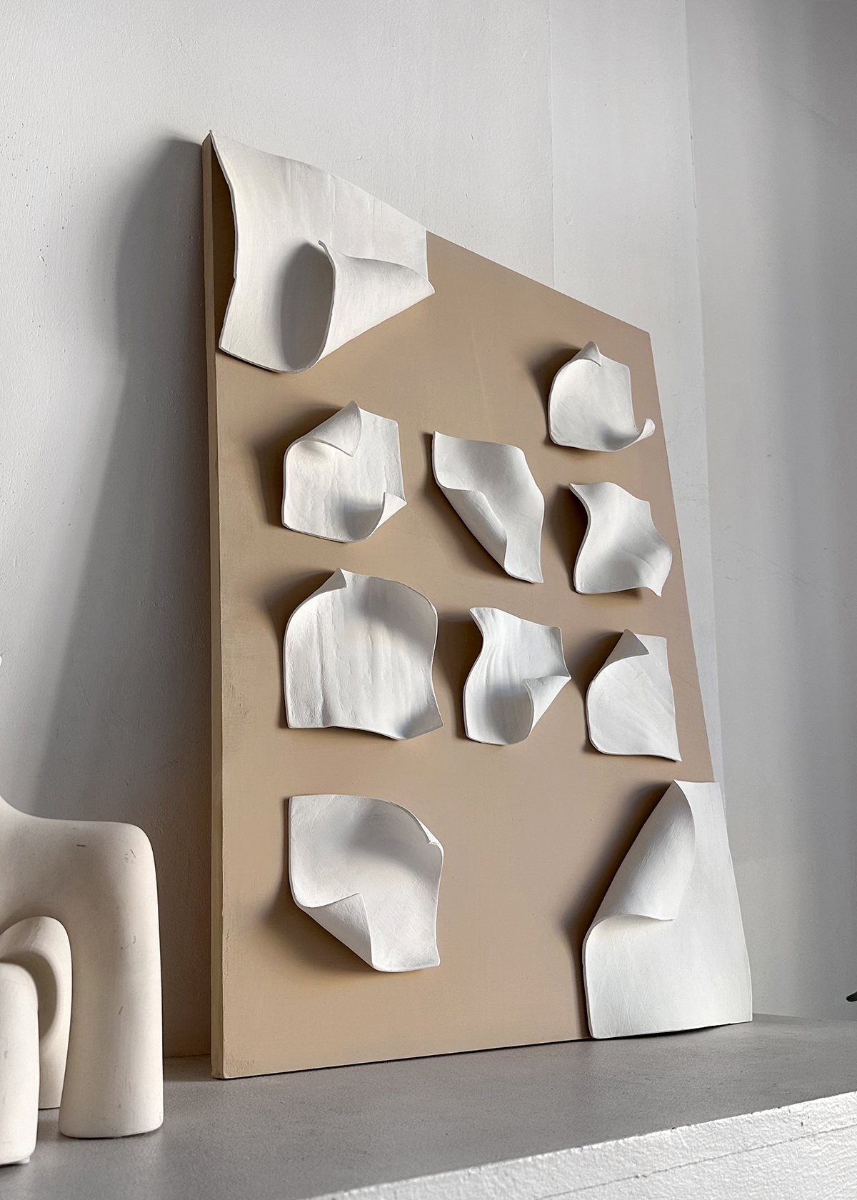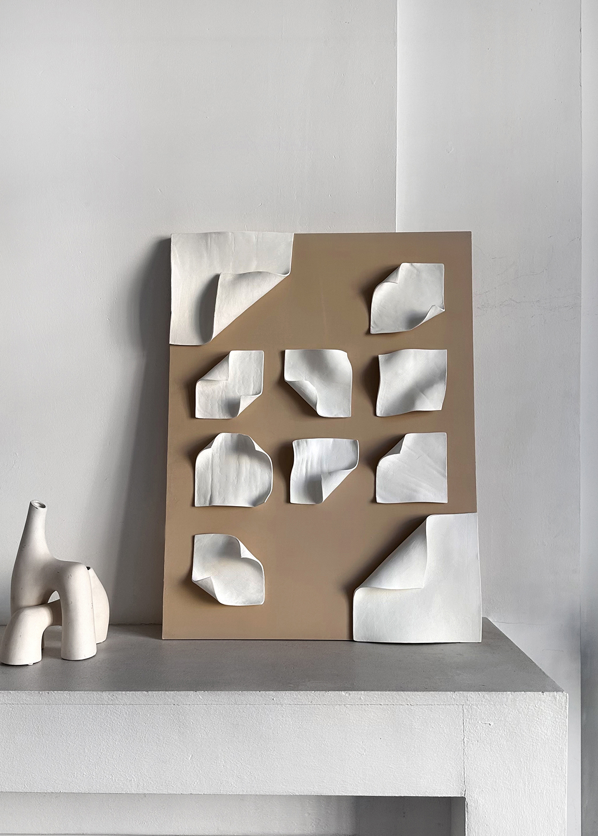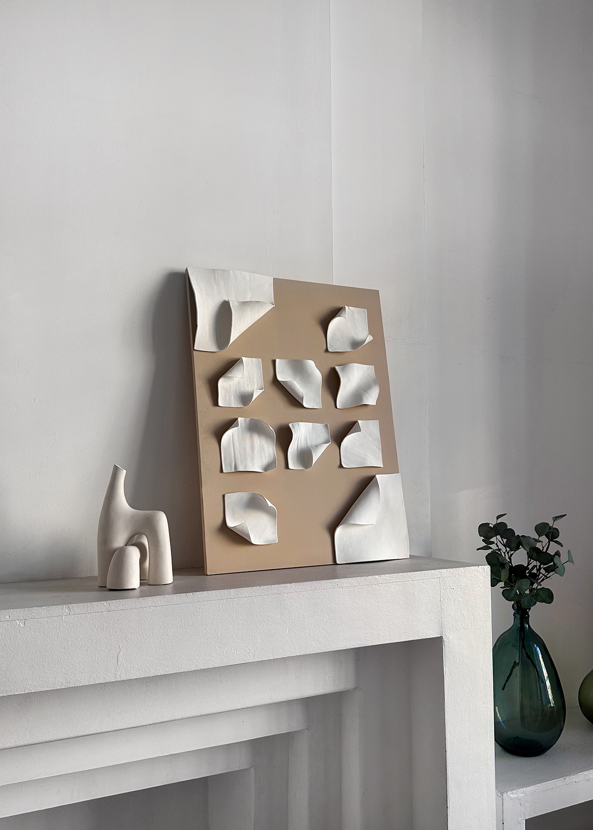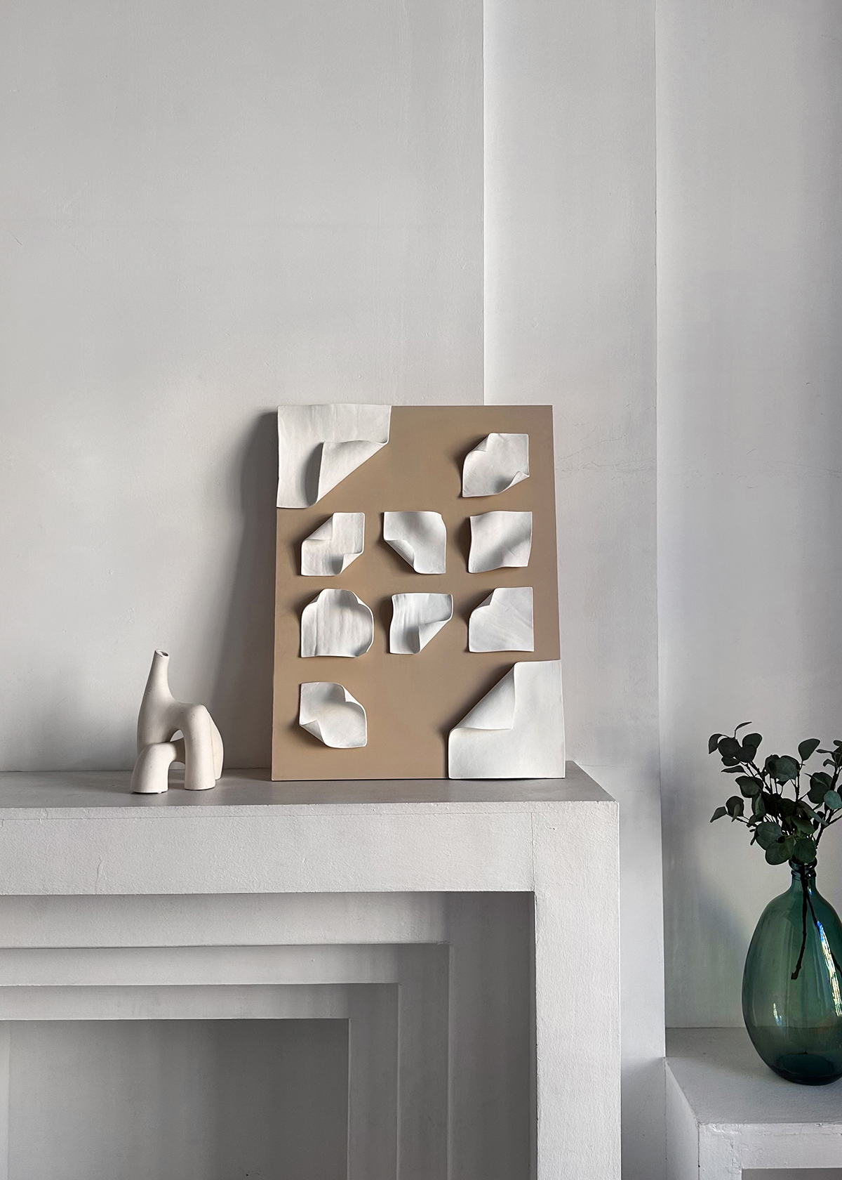Полотнa Geometry отличаются выраженной геометрией и многообразием форм. Каждое создано с использованием тканей, текстурных паст и пластичных материалов.